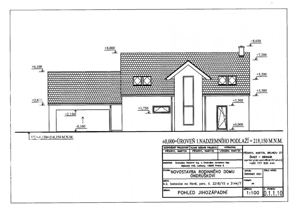 Prodej prostorného rodinného domu 5+kk s dvojgaráží a zahradou v Ivanovicích na Hané. Jedná se o zastřešenou hrubou stavbu důmyslně řešeného projektu. V 1. NP domu je myšleno na velký společný obývací pokoj s krbem a kuchyní vybavenou spíží, pokoj pro hosty, koupelnu s WC, předsíň s šatnou, technické zázemí s dvojgaráží a venkovní WC. V 2. NP klidové části domu jsou 3 pokoje s vlastními šatnami, dvakrát koupelna s WC a sklad. Z inženýrských sítí je počítáno s tepelným čerpadlem, napojením na vodovod a elektřinu. Celková výměra pozemku 900m2 je čtvercového tvaru 28 x 32m. Dům je ideální pro klienty, kteří hledají nemovitost o vlastní představě k dokončení. Město disponuje poštou, mateřskou školou, základní školou, zdravotnickým zařízením a domem s pečovatelskou službou. V místě je dostupná síť obchodů, restaurací, sportovní hala, sokolovna a hřiště. Vzdálenost 2km od nájezdu na dálnici Brno-Zlín-Olomouc.