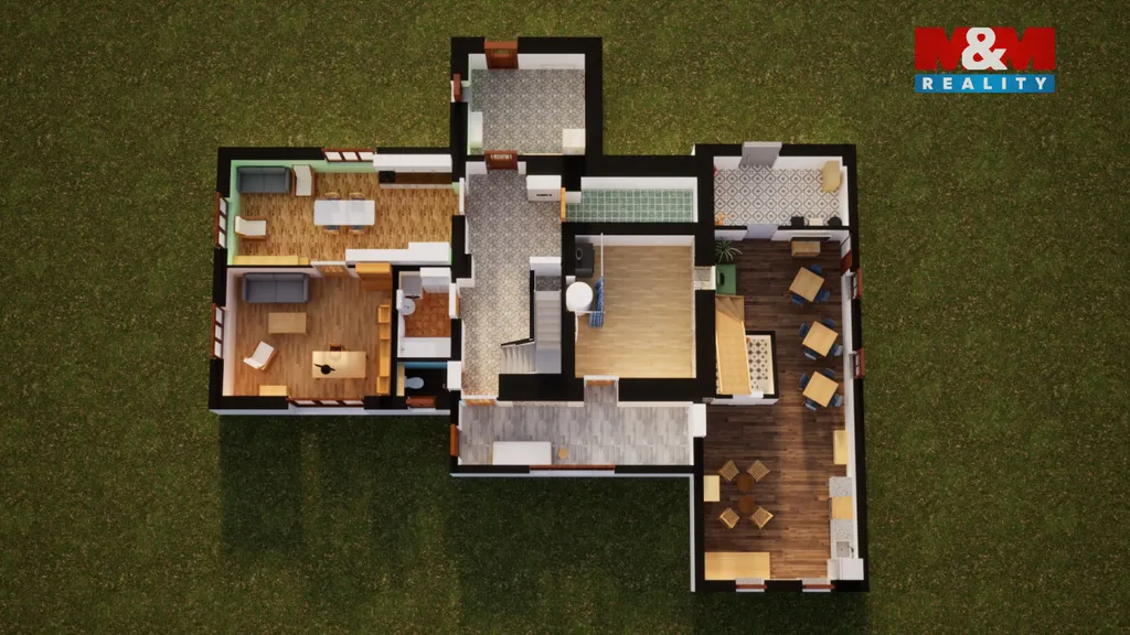 Dům po rekonstrukci v roce z 2022 nabízí moderní a úsporné bydlení s tepelným čerpadlem země–voda. Objekt je koncipován jako dva samostatné domy v jednom: hlavní 4+kk s vlastním vstupem poskytuje komfortní prostor pro rodinu, zatímco druhá část s odděleným vstupem zahrnuje tři pokoje a přízemí o rozloze 60 m² – ideální pro vícegenerační bydlení, kombinaci bydlení a podnikání, nebo jako samostatný podnikatelský prostor. Obě části propojuje vnitřní chodba, kterou lze zamknout z obou stran.
