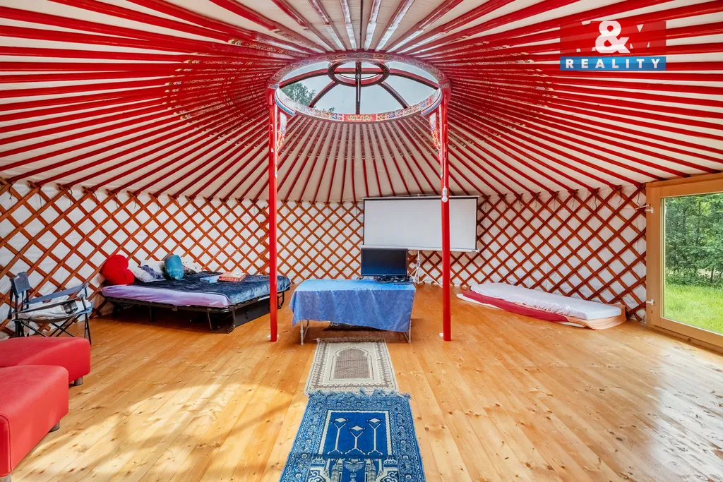 Součástí je suchá a prostorná stodola a udržovaný pozemek o rozloze 9 600 m² se stylovou jurtou, kterou lze využít k relaxaci i glampingu. Pozemek nabízí prostor pro pěstování i chov zvířat, ve stodole je připravena stáj a salaš.