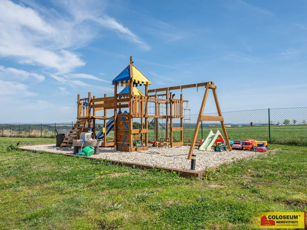 - Samostatně stojící vila s dětským hřištěm a parkováním pro několik vozidel.