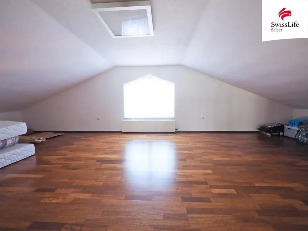 Nabízíme exkluzivně k prodeji samostatně stojící rodinný dům o dispozici 5+1 v rozvojové lokalitě pro výstavbu rodinných domů v obci Křídla. Je situována na severovýchodním okraji obecní zástavby na pozemcích o celkové výměře 1 799 m2. Pozemek je mírně svažitý se sklonem k východu k příjezdové komunikaci. Stavba rodinného domu je řešena jako třípodlažní: suterén (1.PP) je částečně zapuštěn do terénu a je vstupním podlažím směrem od komunikace, přízemí (1.NP) s vedlejším vstupem ze zahrady je hlavním obytným prostorem, podkroví (2.NP) tvoří jeden velký pokoj s koupelnou a WC (užitná plocha 69,4 m2). Jednotlivá podlaží jsou propojena přímým jednoramenným schodištěm z jasanového dřeva. Prostorová dispozice I. PP (užitná plocha 55,0 m2): vstupní hala se schodištěm (15,81 m2), technická místnost (5,79 m2) a garáž (33,12 m2). Dispozice I. NP (užitná plocha 125,6 m2): hala (18,17 m2), kuchyň s jídelnou (28,73 m2) a obývací pokoj s přístupem na západní terasu (21,49 m2), ložnice (15,86 m2), pracovna (13,97 m2), dětský pokoj (15,02 m2), koupelna + WC (10,87 m2), spíž (1,53 m2). Stavba je založena na monolitických základových pasech do nezámrzné hloubky 1,20 m. Svislé nosné konstrukce jsou zděné z keramických cihel HELUZ s kontaktním zateplovacím systémem (expandovaným polystyrenem 10 cm a hladkou minerální tenkovrstvou omítkou). Stropní konstrukce nad 1.PP a 1.NP je provedena z keramobetonových nosníků a cihelných vložek MIAKO + betonová mazanina (skladebná tloušťka 20 a 25 cm), v kuchyni a podkroví SDK podhledy zavěšené na krovech a kleštinách. Podlahy tl. 10 cm (1.PP a 2.NP) a 15 cm (1.NP) s tepelnou a kročejovou izolací (pěnový polystyren) a nášlapnými vrstvami z keramické dlažby a plovoucích dřevěných lamel. Střecha je sedlová mírného sklonu 22° s krytinou skládanou z betonových tašek BRAMAC. Plastové okenní výplně se zasklením izolačním dvojsklem a stíněním venkovními AL žaluziemi s elektrickým pohonem. Dům je napojen na sítě technické infrastruktury: vodovodní přípojka, přípojka dešťové kanalizace, elektro a plynovodní přípojka. Splaškové vody jsou dočasně svedeny do vodotěsné jímky, v obci nyní probíhá výstavba sítě splaškové kanalizace. Zdrojem užitkové vody je vlastní vrtaná studna. V domě je instalováno teplovodní i elektrické podlahové vytápění v kombinaci s deskovými radiátory. Zdrojem tepla je plynový kondenzační kotel VIESSMANN VITODENS 200-W s ohřevem teplé vody do externího zásobníku VIESSMANN VITOCELL 100. Sekundárním zdrojem vytápění je zděný krb s integrovanou krbovou vložkou umístěný v hlavním obytném prostoru. Objekt je vybaven elektronickým zabezpečením. Zahrada o výměře 1 626 m2 má v přední části okrasný ráz se zpevněnými plochami z betonové zámkové dlažby, v zadní části převažuje travnatá plocha s jezírkem a vzrostlými keřovými a stromovými dřevinami. Vedlejší stavbou je dřevěný zahradní domek. Pozemek je ohraničen oplocením ze svařovaných panelů s vjezdovou bránou a dvěma vstupními brankami.