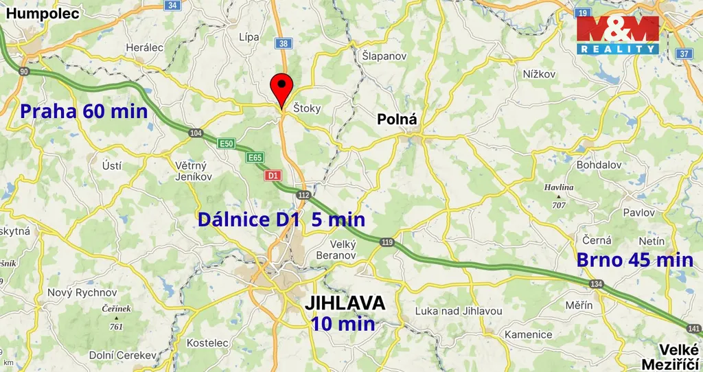 Nabízíme k pronájmu prostornou halu o rozměrech 20,8 × 11,5 m (celková plocha cca 240 m²) v obci Štoky. Objekt se nachází ve strategické lokalitě na spojnici mezi Jihlavou a Havlíčkovým Brodem, s vynikajícím napojením na dálnici D1 (cca 5 min. jízdy).