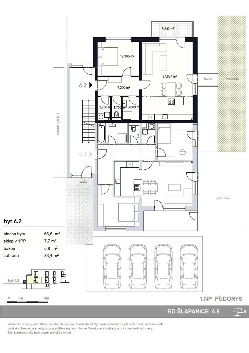 Byt č.2 je umístěn v 1.NP
