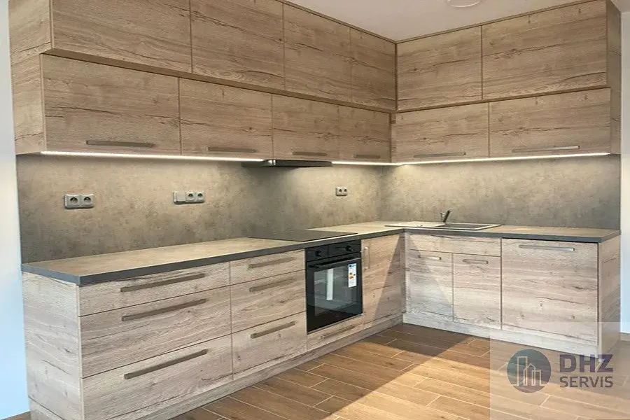 Součástí bytu je vybavená kuchyň, ve které je k dispozici myčka, indukční deska, el. trouba. V kuchyňské části je zároveň k dispozici spíž/komora, která poskytuje další úložný prostor. V koupelně se nachází sprchový kout, umyvadlo vč. skříňky a zrcadlo. V celé jednotce je položena dlažba. Všechna okna mají nainstalované předokenní žaluzie.