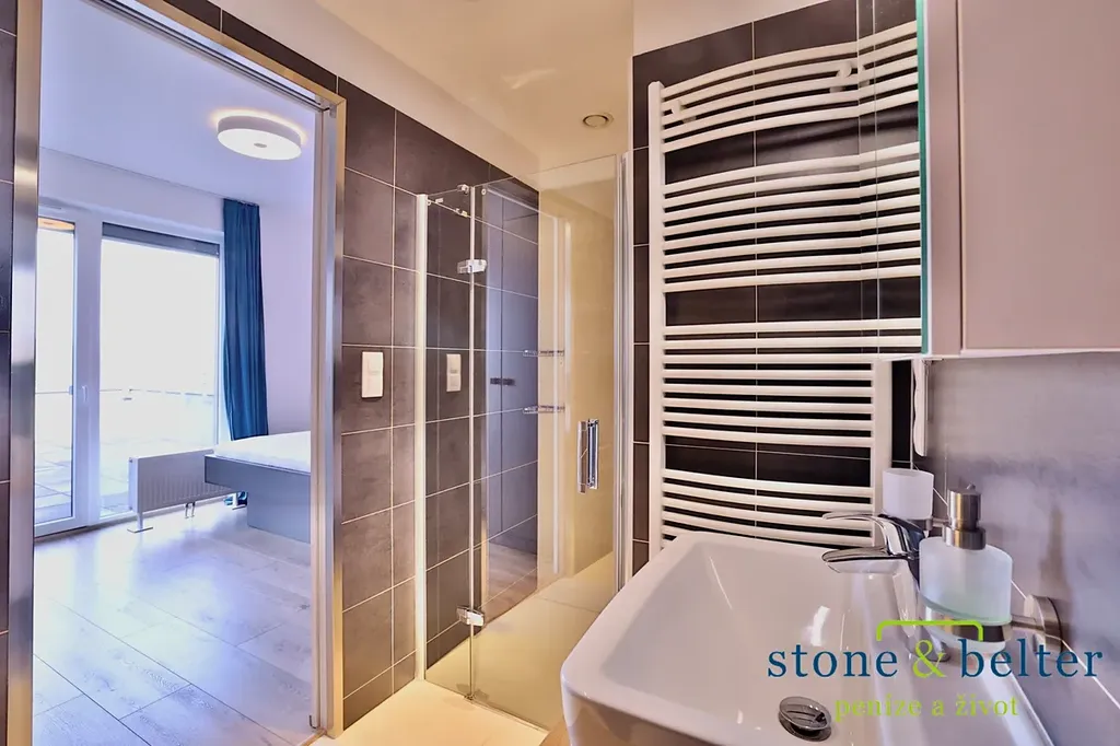 • ze všech pokojů je přístup na velkou terasu nabízející nevšední pohled na Prahu