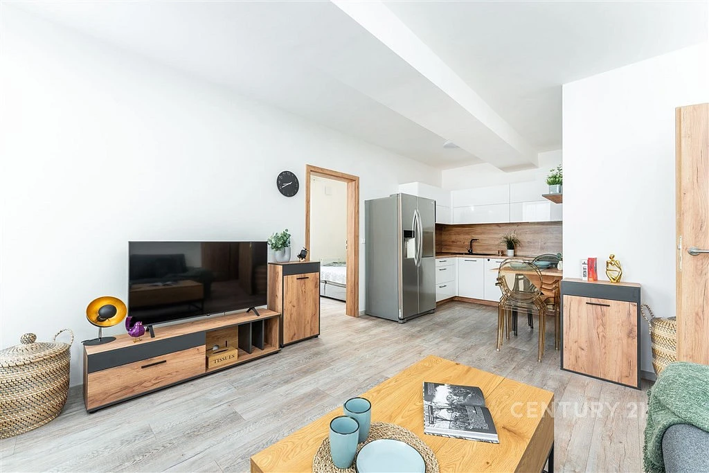 Byt se nabízí zařízený nábytkem jako na fotografiích (vyjma dekorací). Sedačka v obývacím pokoji s integrovanou plnohodnotnou matrací pro perfektní odpočinek vašich návštěv.