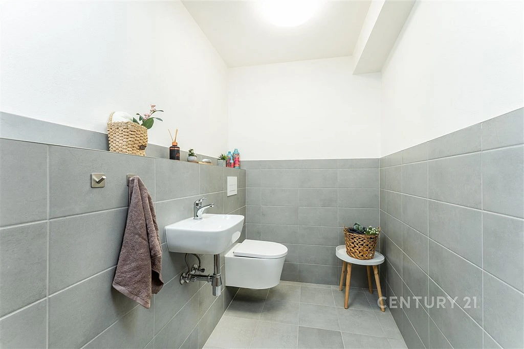 Kuchyňský kout je zařízený na míru včetně vestavěných spotřebičů Electrolux, velkorysé pracovní plochy pro neomezené kulinářské zážitky a spíže hned při ruce. Ve spíži/komoře a v předsíni vestavěné skříně se spoustou úložného prostoru. Z ložnice je výstup na terasu se slunečníkem a posezením pro vás i návštěvu. Na ložnici navazuje ensuite koupelna s toaletou a sprchovým koutem. Druhá toaleta je přístupná z předsíně.