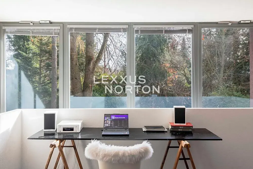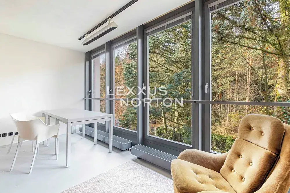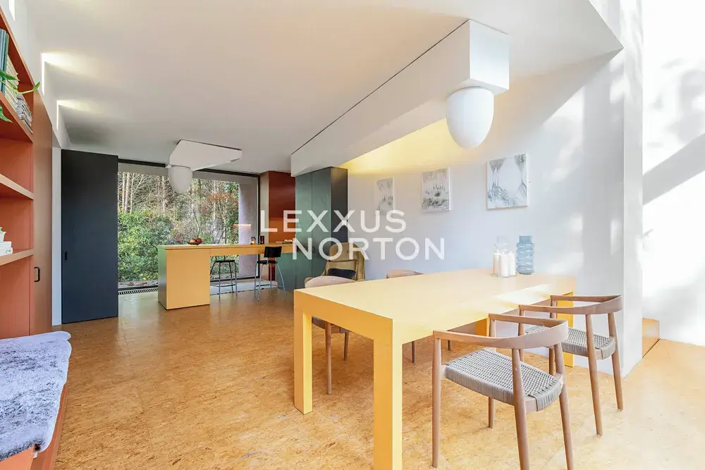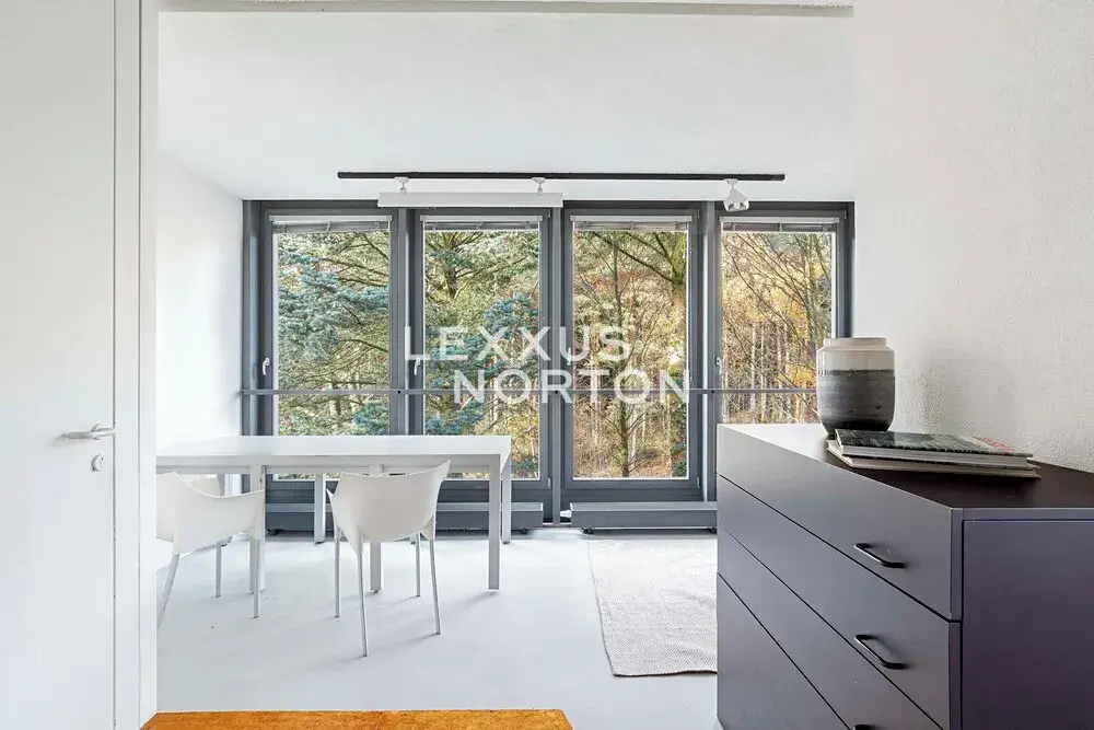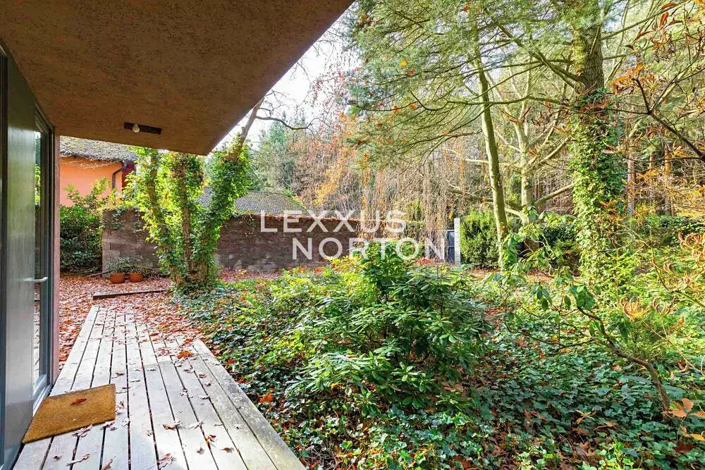 „Nechceš-li odněkud odejít, znamená to, že jsi doma.“ Moderní rodinný dům citlivě zasazený do krásné rozlehlé divoké zahrady o ploše 1.400 m2. Jedná se o nemovitost vysoké estetické kvality a nadčasového řešení, která díky bohatě dimenzovaným a vhodně umístěným proskleným plochám v maximální míře komunikuje s lesní zahradou, do které byla vsazena. Rodinný dům nabízí na ploše celkem 177 m2 tři ložnice, samostatný obývací pokoj a kuchyň s jídelnou s výstupem na terasu a do zahrady. Vše doplňuje příslušenství sestávající ze dvou koupelen (jedna s vanou a druhá se sprchovým koutem), skladových a technických prostor. K dispozici je zde architektonická studie rozšíření domu v úrovni přízemí o zhruba 60 m2 do jejíž hmoty lze umístit dvě ložnice s příslušenstvím, anebo obývací pokoj, opět s možností výstupu přes terasu do zahrady.