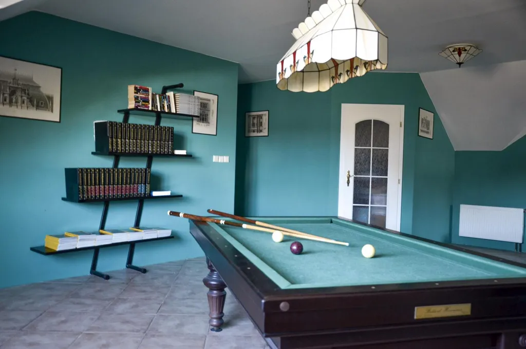 Najdete zde vyhřívaný bazén 12 × 5,5 m s lamelovým zakrytím, automatické zavlažování a zahradní osvětlení.