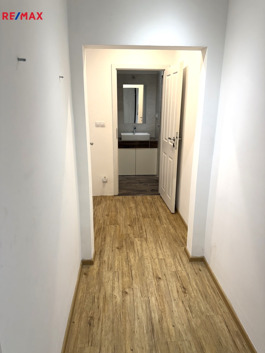 Dominantou bytu je světlý obývací prostor s kuchyňským koutem, který je vybaven moderní kuchyňskou linkou včetně vestavěných spotřebičů. Dispozice dále nabízí dvě samostatné místnosti poskytující dostatek soukromí pro rodinu, ložnici či pracovnu.