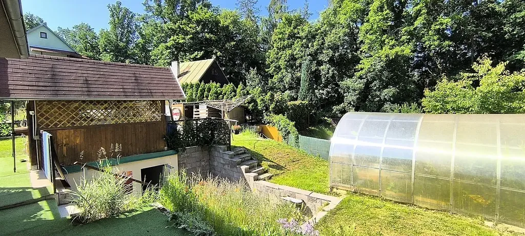 Na pozemku se dále nachází skleník, dřevník, zděná kůlna a dílna, což poskytuje dostatek úložného i pracovního prostoru.