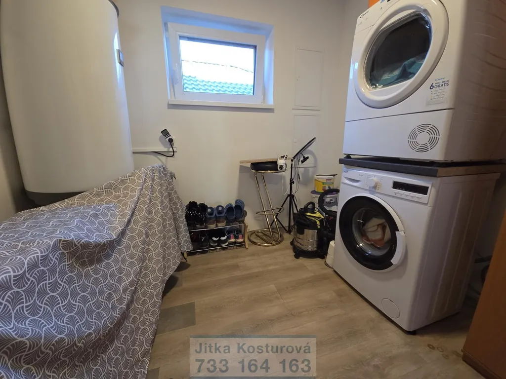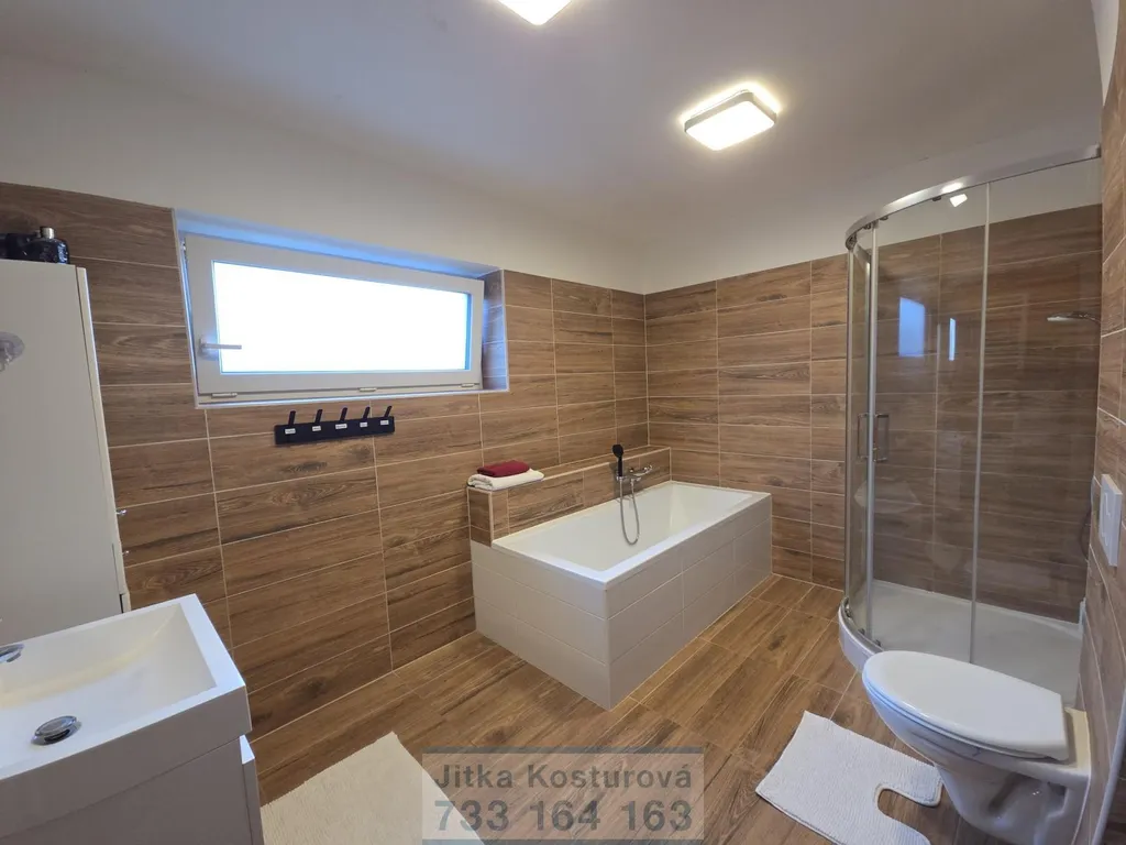 Dům dále disponuje čtyřmi samostatnými pokoji, koupelnou s vanou i sprchovým koutem, technickou místností a samostatným WC. V celém domě je instalováno podlahové vytápění s regulací v každé místnosti, které zajišťuje příjemný tepelný komfort.
