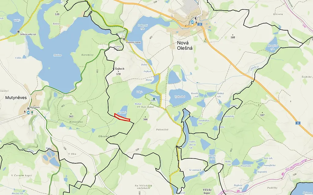 Prodej lesních pozemků v k. ú. Nová Olešná. Jedná se o na sebe navazující tři parcely (p. č. 489 lesní pozemek o výměře 5.809 m2, p. č. 490 ostatní plocha o výměře 2.032 m2 a p. č. 491 lesní pozemek o výměře 2.122 m2), vzrostlý smíšený porost s převahou břízy.