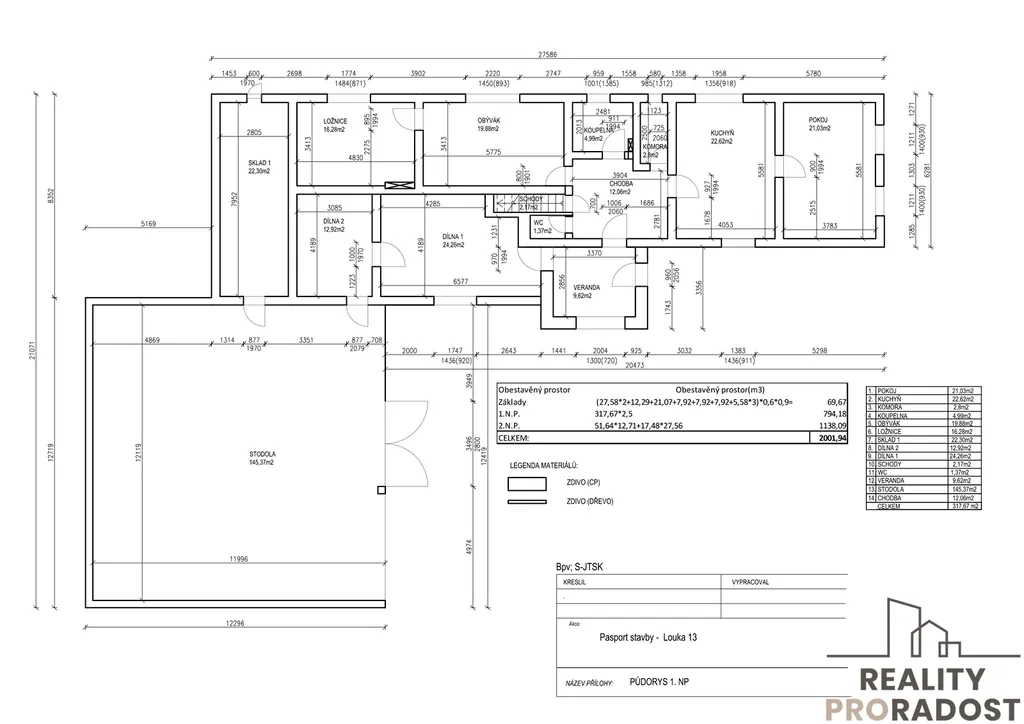Dům je o dispozici 3+1 a technické místnosti cca o ploše 317 m2 - detailní plochy jsou v půdorysu.