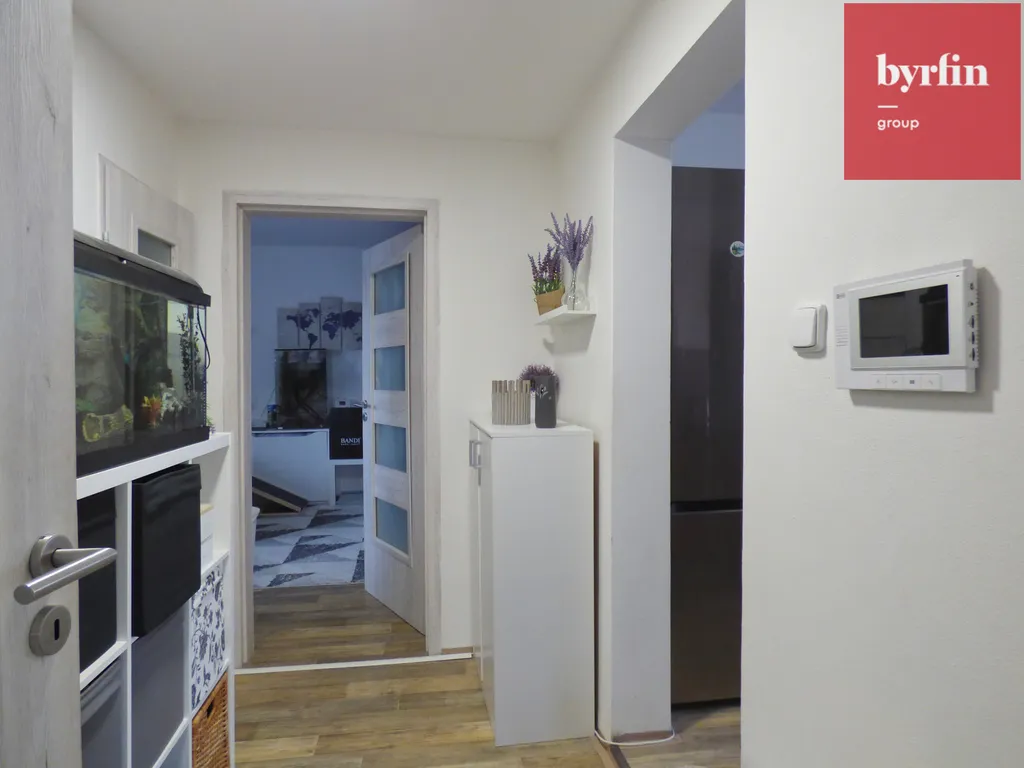 K bytu náleží také venkovní místnost o velikosti cca 6 m², vhodná jako úložný prostor, a jedno vyhrazené parkovací místo.