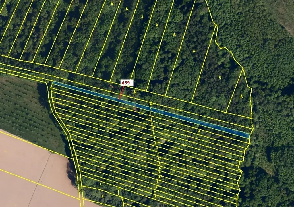 Lesní pozemek o výměře 1895 m2, parcelní číslo 459, podíl 1/1, katastrální území Hradčany na Moravě, obec Hradčany, obec s rozšířenou působností Přerov, okres Přerov, Olomoucký kraj. Po těžbě.