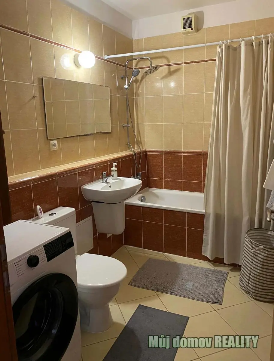 Byt je kompletně zařízený a připravený k nastěhování. Veškerý nábytek zůstává k dispozici pro budoucího nájemce. Součástí bytu je koupelna s podlahovým vytápěním, která zajišťuje vyšší komfort bydlení, a také praktická šatna, která nabízí dostatek úložného prostoru.