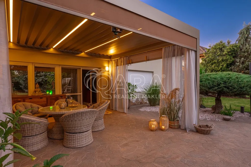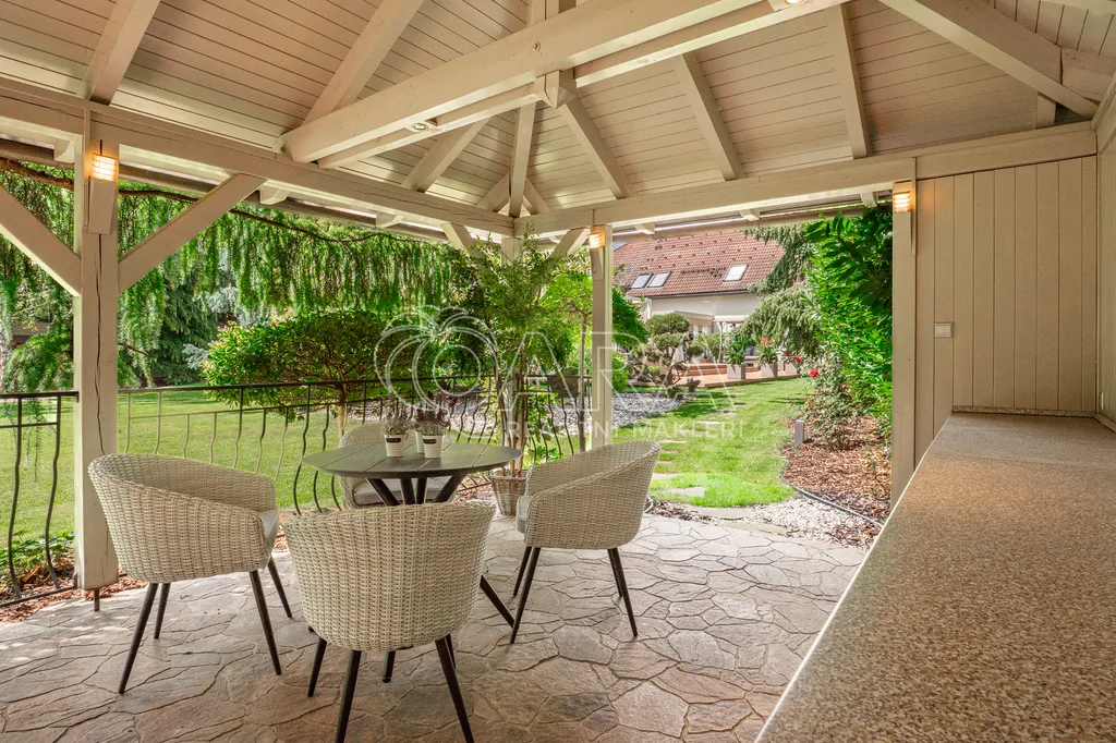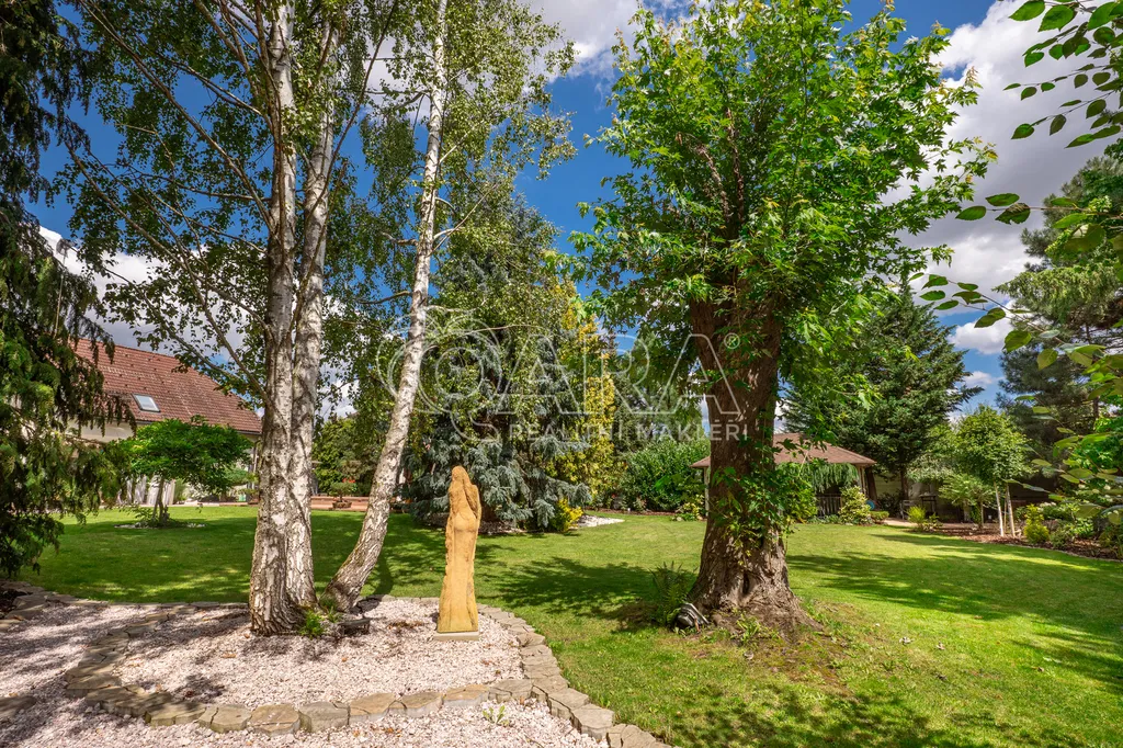 V klidné vilové části obce se nachází dům s plochou 540 m², situovaný na pozemku o celkové výměře 1 749 m², z toho 1 487 m² tvoří parkově upravená zahrada, která poskytuje maximální soukromí a prostor pro relaxaci i společenská setkání.