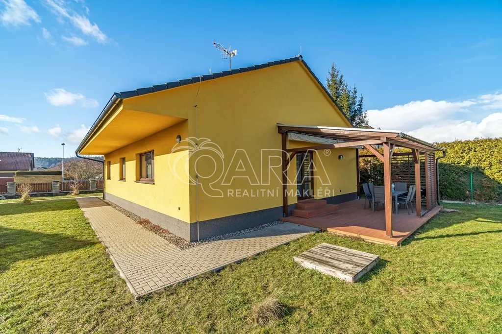 Dispozici domu tvoří zádveří se šatnou, technická místnost s elektrokotlem a bojlerem, chodba, koupelna s vanou i toaletou, další samostatné WC, dva dětské pokoje, ložnice a prostorný obývací pokoj s kuchyňským koutem, odkud je přímý vstup na zastřešenou terasu.