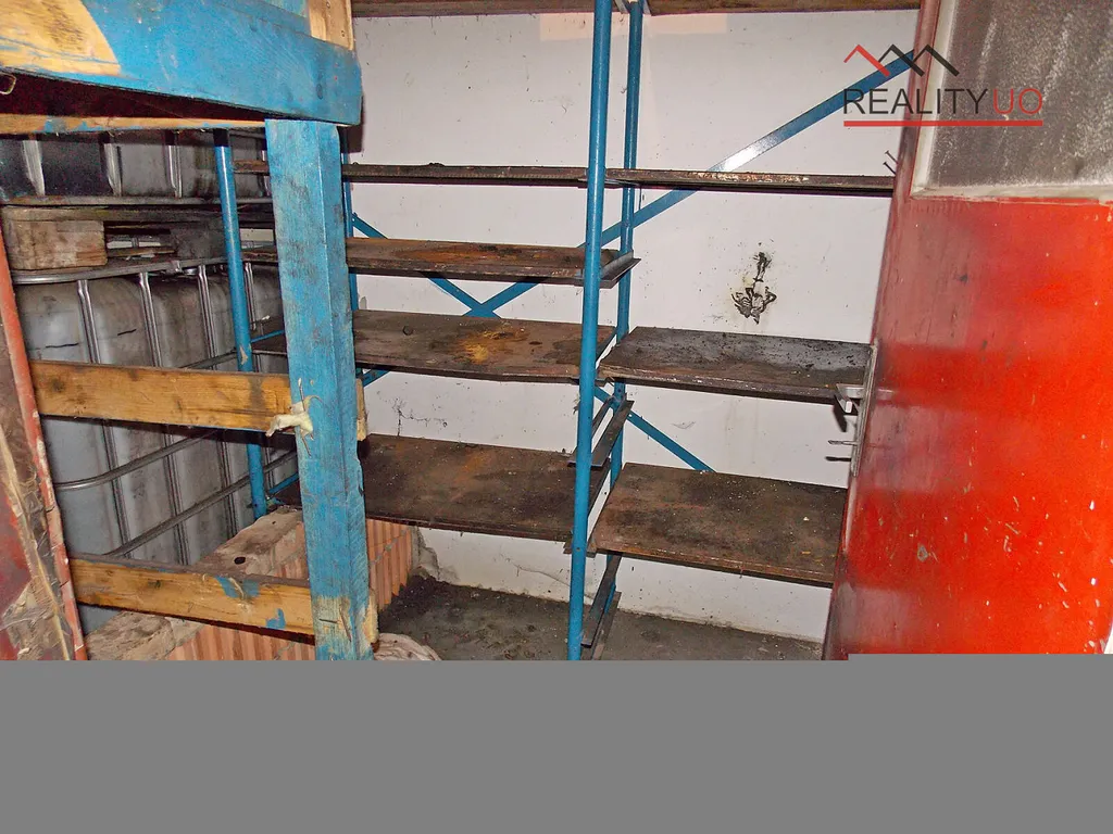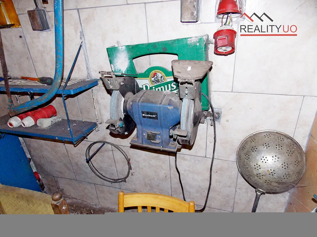 Na obytnou část navazuje sklad, kotelna a uhelna, koupelna pro dílnu. Dále velká dílna s WC a umyvadlem.