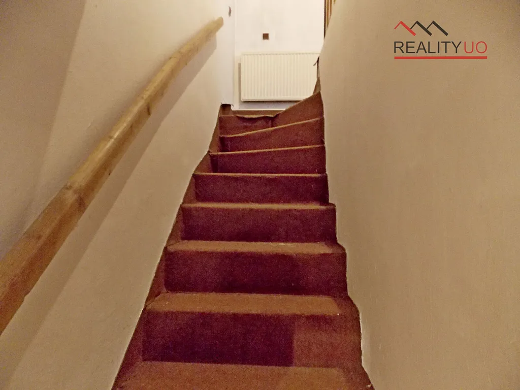 V patře domu se nachází dva pokoje s kuchyňským koutem, koupelna s vanou a WC. Do 1. patra vede venkovní i vnitřní schodiště.