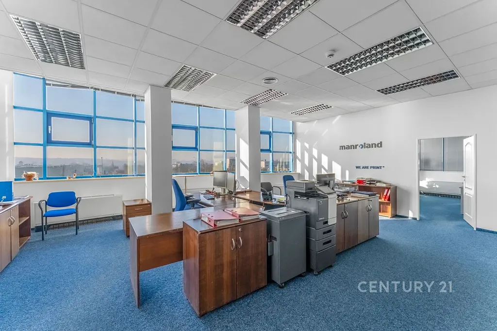 Vybavení: Kanceláře jsou připraveny k okamžitému užívání včetně stolu a nábytku. Na podlahách jsou položeny zátěžové koberce.