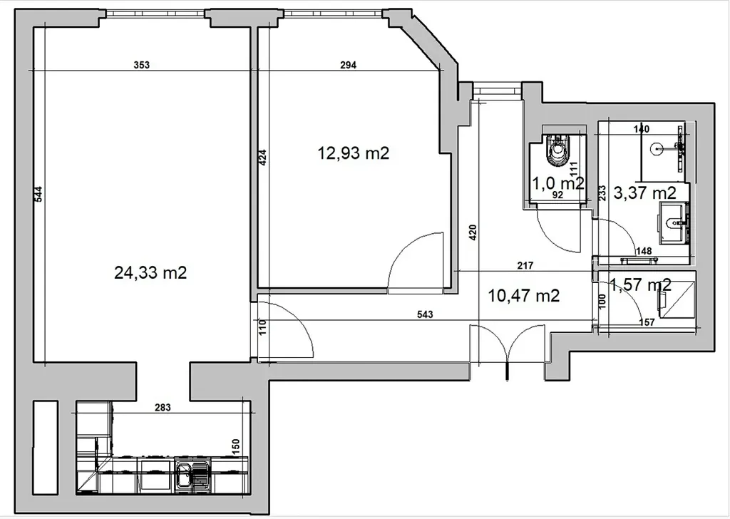 Byt sestává ze vstupní haly s dostatkem místa pro botník či šatní skříň. Dále technická místnost, ideální pro pračku a jako další úložný prostor. Samostatná koupelna se sprchovým koutem. Oddělená toaleta pro větší komfort.