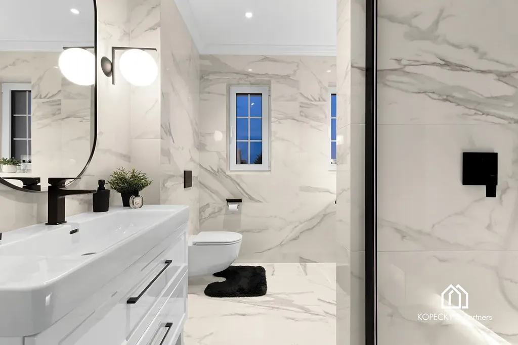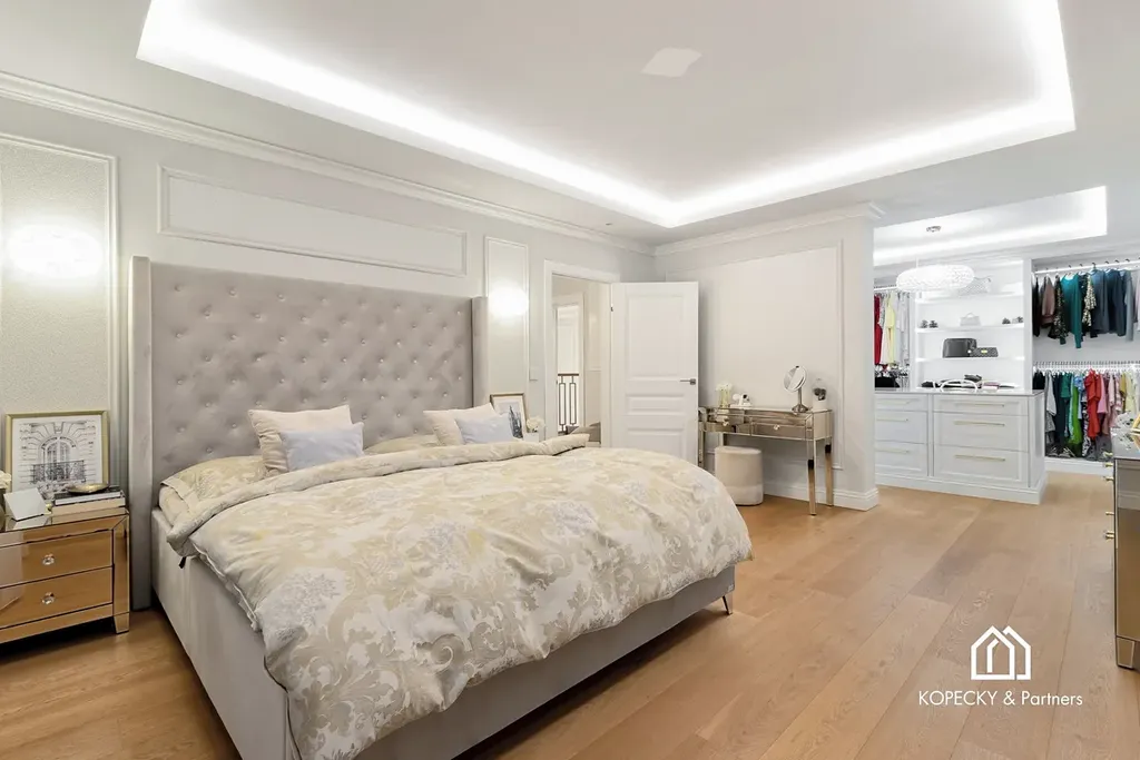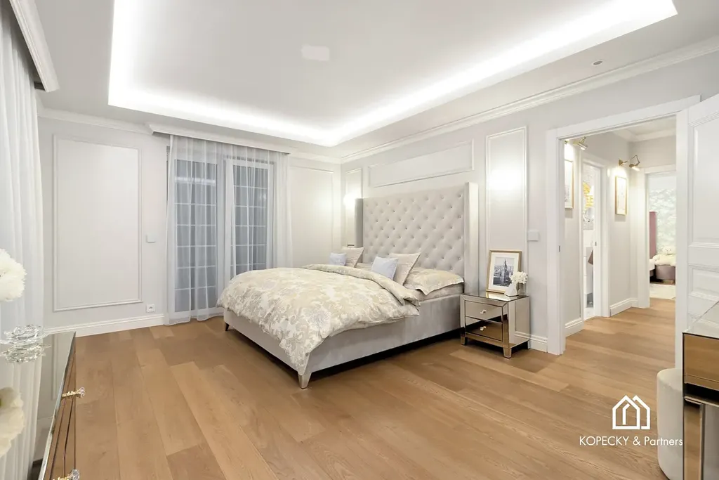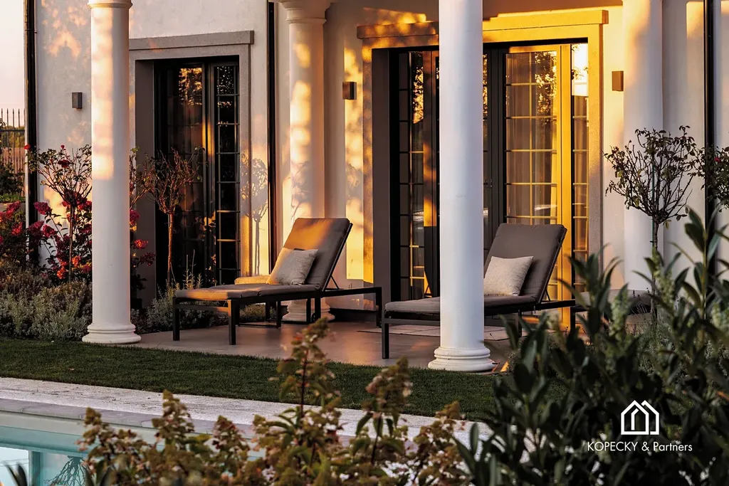 Celý dům je zařízen v duchu sofistikované elegance – od ikonických svítidel navržených Zahou Hadid, přes jídelní stůl Bonaldo pro deset hostů, až po nábytek a osvětlení od značek Eichholz, Moooi či Cattelan Italia. Každý detail byl pečlivě vybrán tak, aby tvořil harmonický celek.