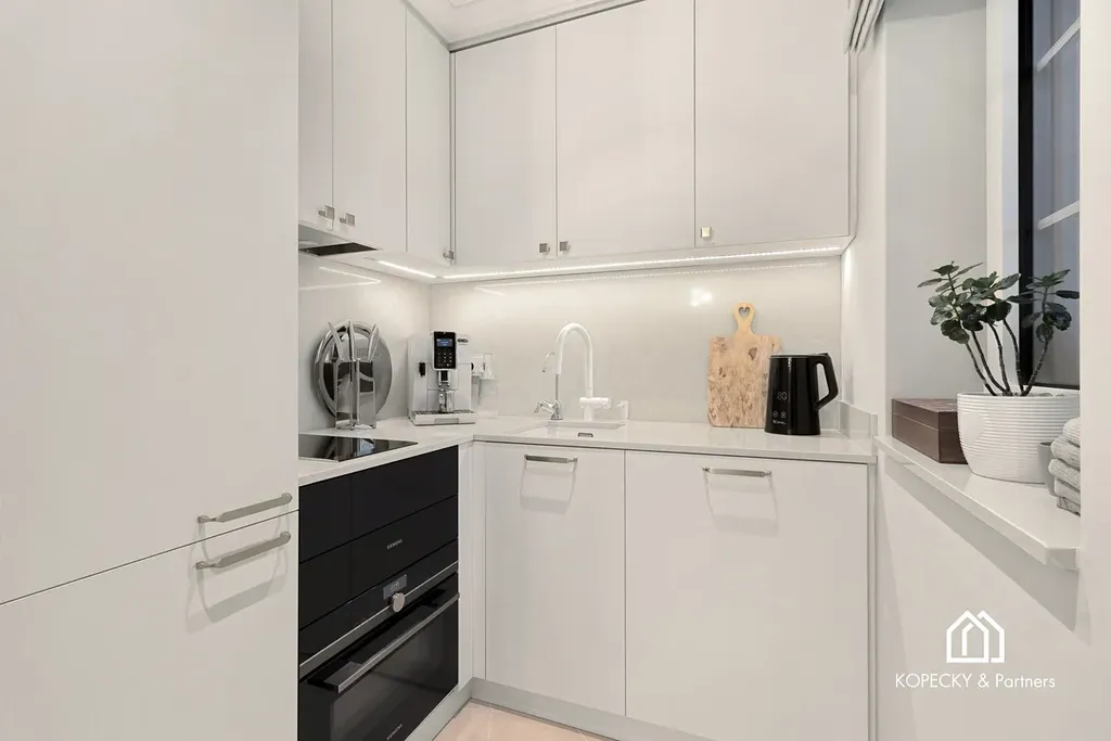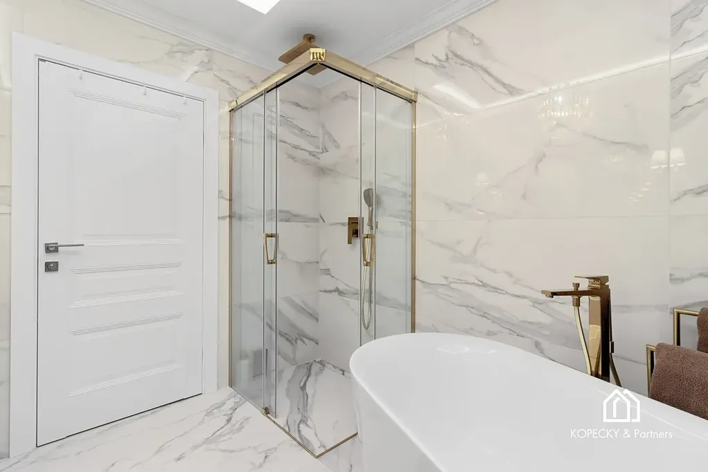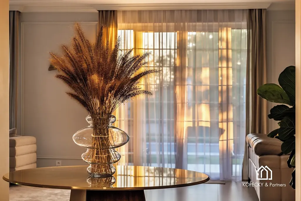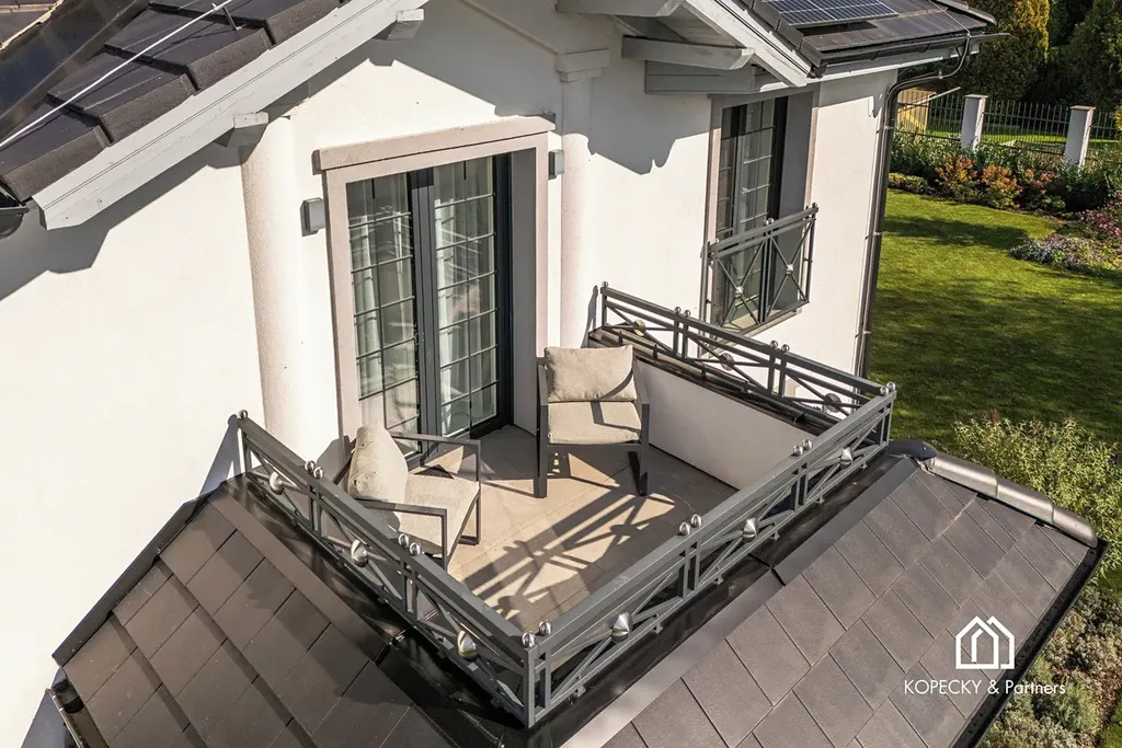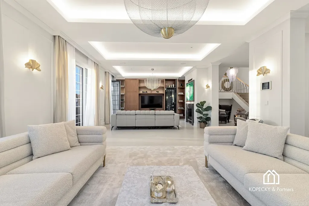 Součástí kupní ceny je nadstandardní interiérové vybavení laděné do stylu art deco, včetně designového nábytku a svítidel od renomovaných značek. Dům je díky tomu připraven k okamžitému užívání bez nutnosti dalších investic do vybavení.