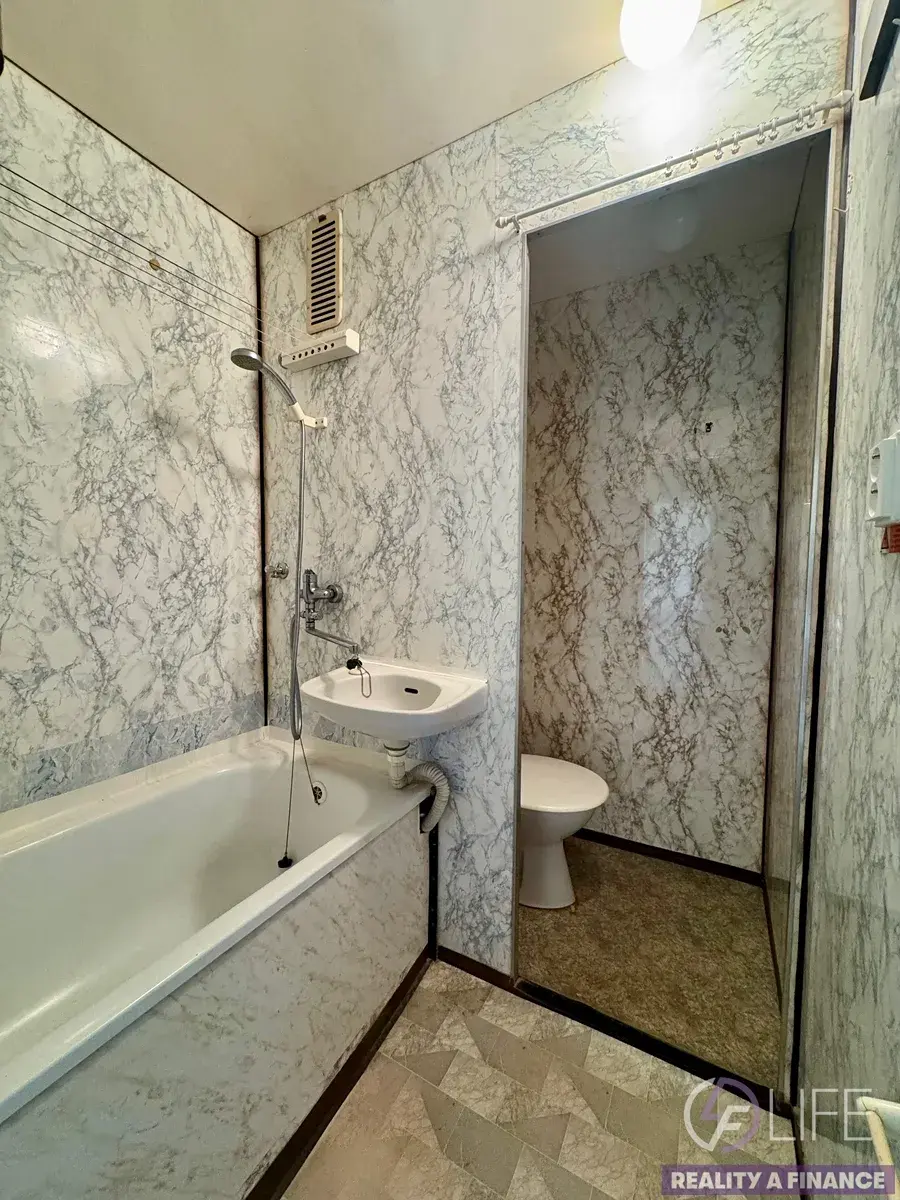 Dispozici tvoří vstupní chodba, kde je možnost vybudovat praktickou šatnu nebo prostor využít k případnému rozšíření koupelny, dále koupelna s vanou a WC, kuchyň s kuchyňskou linkou a prostorný obývací pokoj.