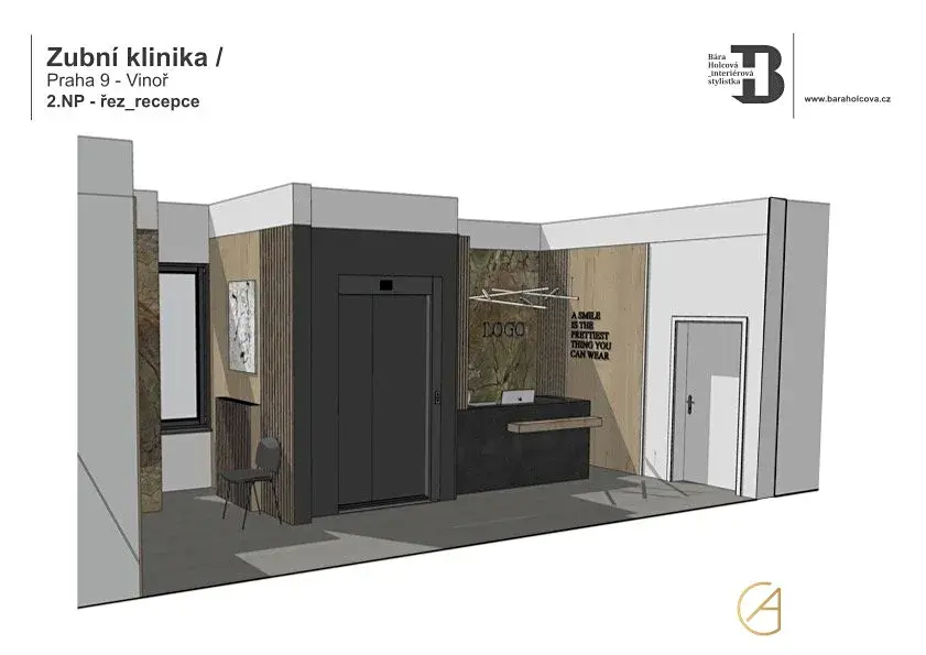 Nabízené prostory se rozkládají na dvou podlažích a nabízejí celkem sedm prostorných a moderně navržených ordinací. Při vstupu vás přivítá recepce s profesionálním designem a čekárna, které zanechají perfektní první dojem na vaše klienty. Součástí prostor je také rentgenová místnost (přizpůsobeno pro ortodoncii), sterilizace, šatna a denní místnost pro zaměstnance, která zajistí pohodlí a zázemí pro váš tým. Ve všech místnostech je příprava na klimatizace a samozřejmostí je také výtah, který zajistí bezbariérový přístup.
