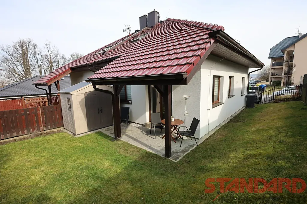 • Zázemí: zahradní domek a úložný dřevěný kontejner před domem.
