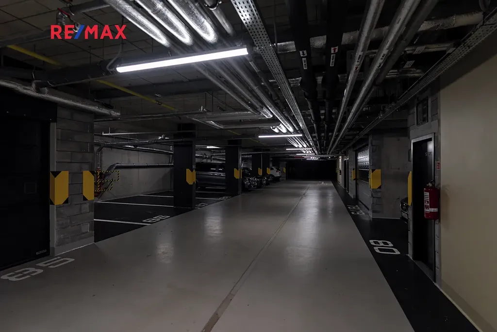 K jednotce náleží sklepní kóje a také prostorné parkovací stání v podzemních garážích, které zajišťuje komfortní parkování přímo v domě.