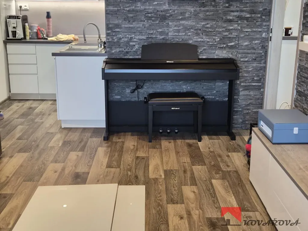 Světlý, teplý a velice útulný byt 2+kk v družstevním vlastnictví, 40m2, v 6.patře sedmipatrového domu s výtahem, s výhledem na centrum obce Štětí, okres Litoměřice. Byt je po kompletní, rozsáhlé a nákladné rekonstrukci, je sladěn do světlých barev (bílá / šedá) a je vybaven. V kuchyňském koutě leštěná kuchyňská linka vyrobena na míru včetně vestavěných spotřebičů (mikrovlnka, el. indukční varná deska, horkovzdušná trouba, samostatně stojící nerez lednička, zděné bytové jádro, prostorná koupelna společně s WC a moderním sprchovým koutem včetně doplňků, v obývací části kvalitní prostorná rozkládací sedací souprava, leštěný nábytek, v ložnici vestavěná leštěná šatní skříň, postel, na chodbě též šatní skříně prosklené. Celý byt je zabezpečen protipožárními a bezpečnostními dveřmi, ostatní dveře v bytě s obložkami ve stejné kvalitě i barvě, veškeré zdi vyštukované, s podhledy a zapuštěnými bodovkami, nové rozvody, jističe, vystěrkované podlahy s vinylem, dlažby, plastová okna s venkovními žaluziemi, UV folie i sítě proti hmyzu. K bytu náleží komora na společné chodbě, dále sklepní koje v suterénu domu a společná kolárna. Celý dům je po celkové revitalizaci, má bezbarierový vstup, je zateplen, fasáda, stoupačky v plastu, výtah, vchody. Družstvo velice dobře hospodaří s financemi. Měsíční poplatky činí 4022 Kč vč. fondu oprav + el.energie. Veškerá občanská vybavenost v místě (u domu park, parkování, obchody....), výborná dopravní dostupnost. Pro další informace a prohlídky volejte makléřku.