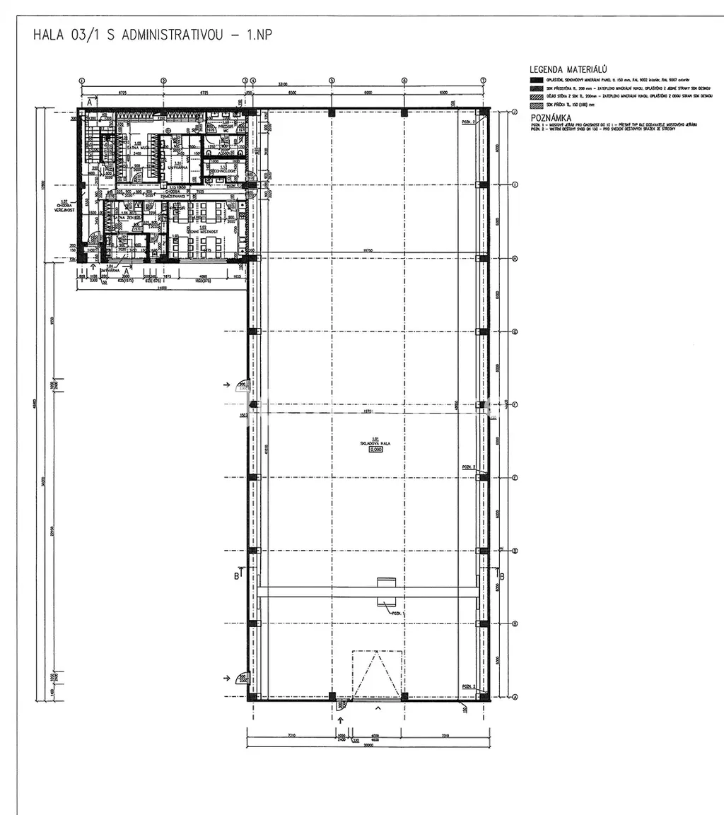Skladovací hala o výměře 949m2 byla navržena s ohledem na maximální flexibilitu a efektivitu provozu. Manipulace se zbožím je usnadněna širokými vjezdy a dostatečnou světlou výškou hal (cca 10m), které jsou vhodné pro různé typy skladování. Prostor disponuje přímými vjezdy pro kamiony, což umožňuje plynulý provoz. Bezpečnost skladovaných materiálů zajišťuje kamerový systém. Administrativní budova o velikosti 449m2 je světlá, klimatizovaná a dělená včetně sociálního zázemí, kuchyňky, konferenční místnosti.