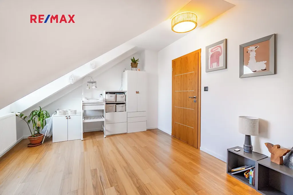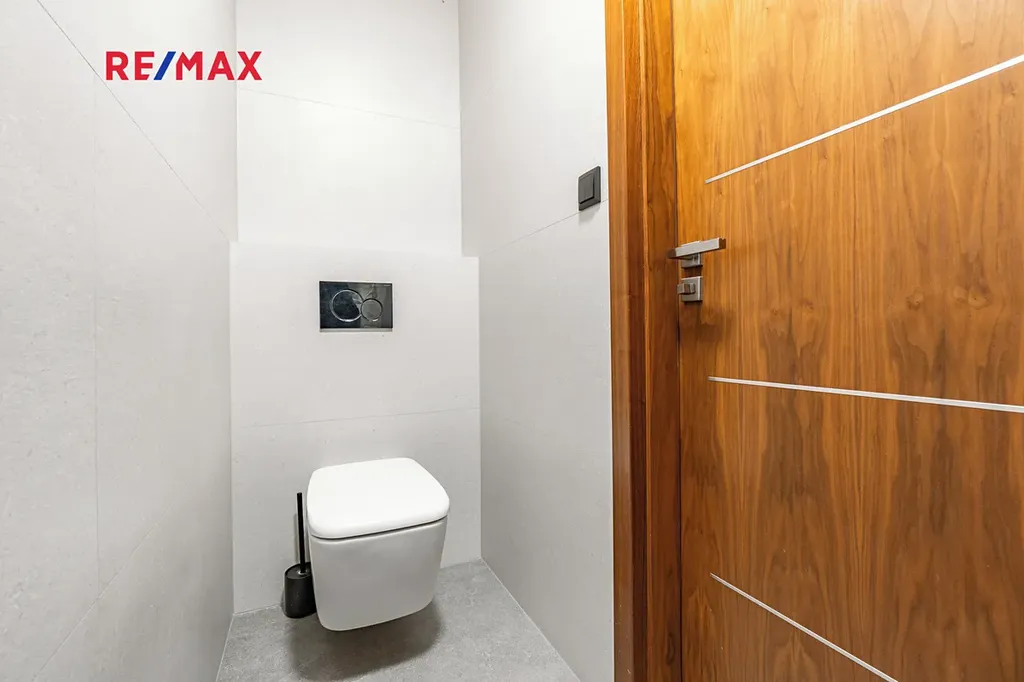 V tomto podlaží se dále nachází pokoj, koupelna a samostatné WC. Koupelna, toaleta i vstupní chodba prošly rekonstrukcí na konci roku 2025.