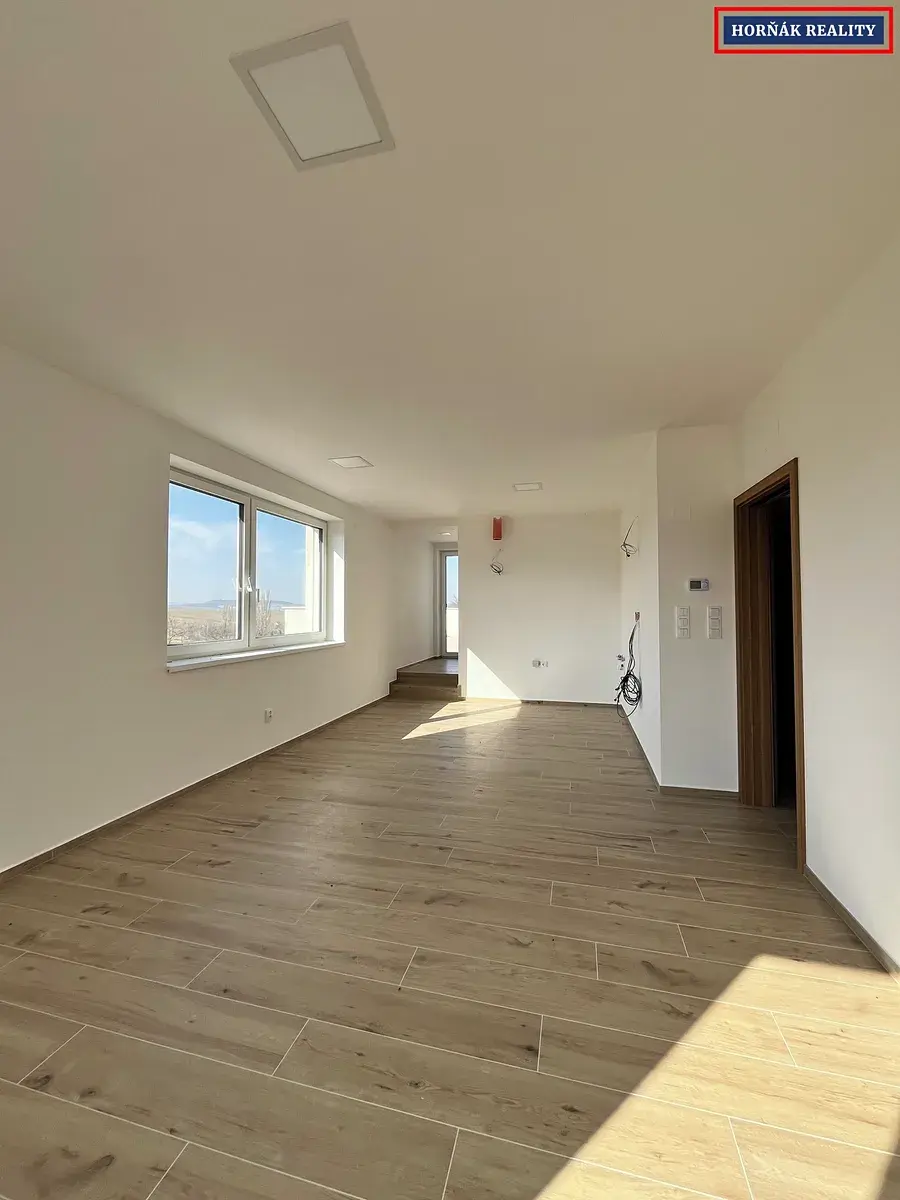 Nabízíme k pronájmu zcela nový, právě dokončovaný byt o dispozici 4+kk, který se nachází ve 2. patře bez výtahu v novostavbě bytového domu o čtyřech bytech na ulici Jabloňová v Bučovicích - místní části Kloboučky, a zaujme svou velkorysou prostorností, světlostí a moderním provedením.