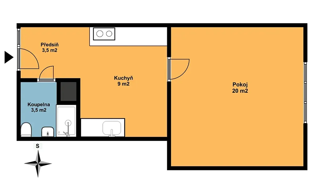 Pronájem bytu 1+1, Brno, Husovická, 36 m2