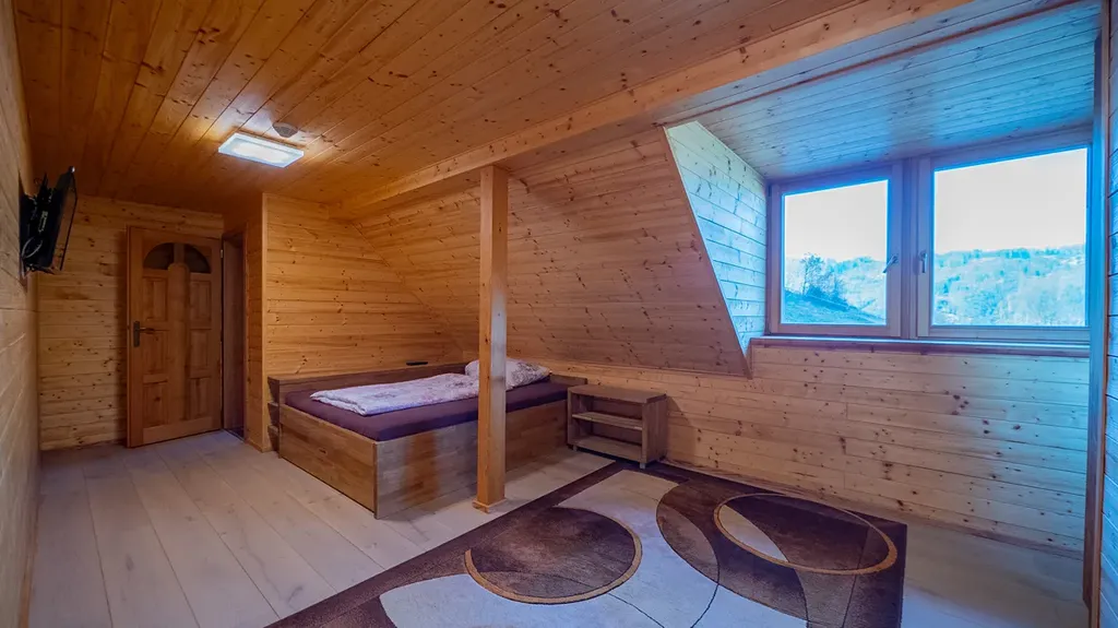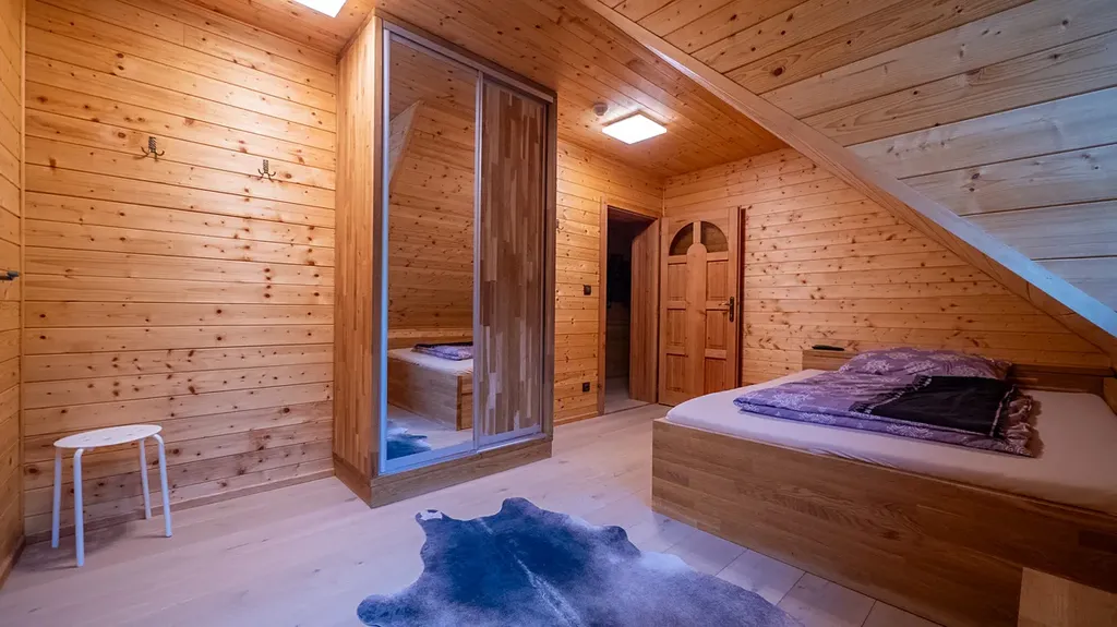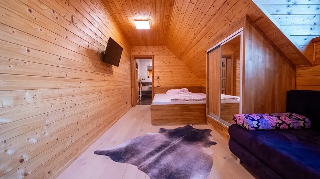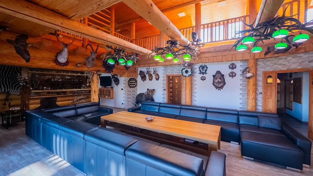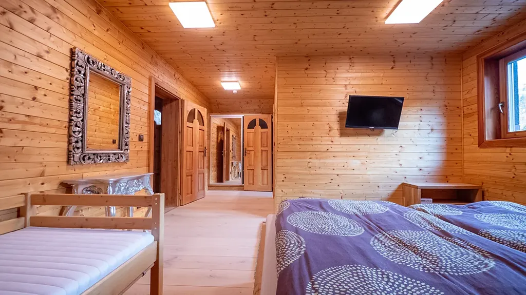 Součástí usedlosti je menší samostatný srub, který slouží jako společenská nebo relaxační místnost. Srub je vybaven luxusním dřevěným nábytkem, kuchyňskou zónou, krbem a udírnou.