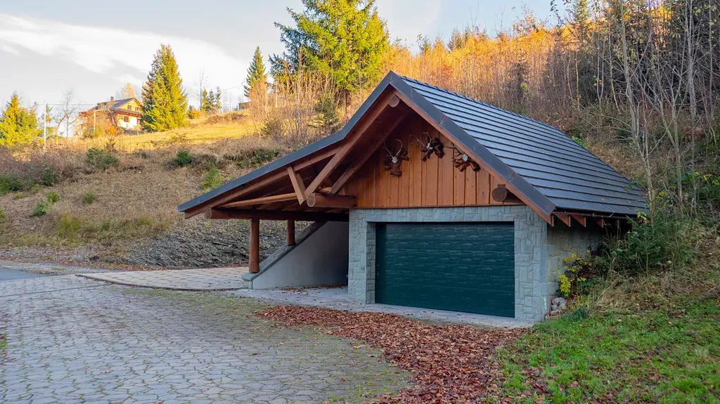 Při příjezdu k usedlosti je možné využít menší samostatnou garáž včetně krytého stání. Součástí usedlosti jsou louky a lesy o celkové ploše 38 944 m2.