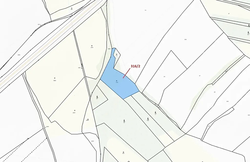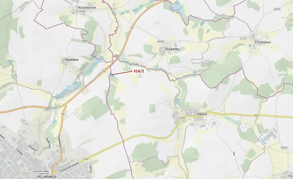 Trvalý travní porost o výměře 3211 m2, parcelní číslo 316/2, podíl 1/1, katastrální území Olešná u Pelhřimova, obec Olešná, obec s rozšířenou působností Pelhřimov, okres Pelhřimov, Kraj Vysočina.