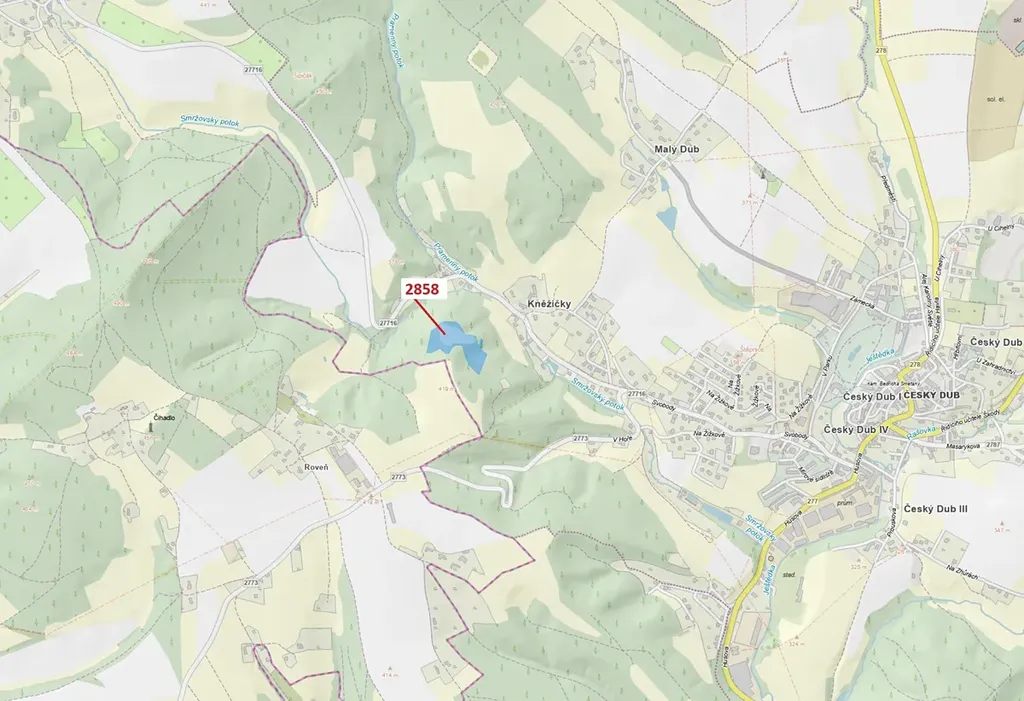 Trvalý travní porost o výměře 16 722 m2, parcelní číslo 2858, podíl 1/1, katastrální území Český Dub, obec Český Dub, obec s rozšířenou působností Liberec, okres Liberec, Liberecký kraj.