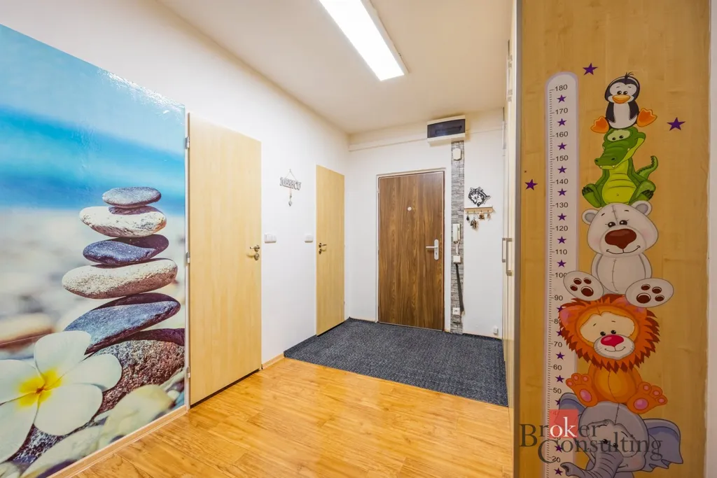 Byt nabízí velký obývací pokoj s jídelním koutem, samostatnou kuchyni, ložnici a dětský pokoj. Nechybí prostorná vstupní chodba, komora, koupelna s rohovou vanou a samostatné WC.