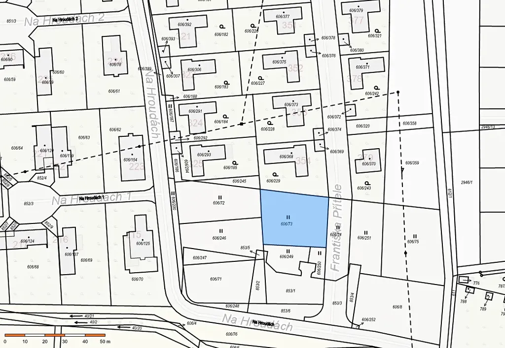 Pozemek splňuje regulativy územního plánu pro výstavbu rodinného domu (BI) – maximální zastavěnost cca 40 %, max. 2 nadzemní podlaží.