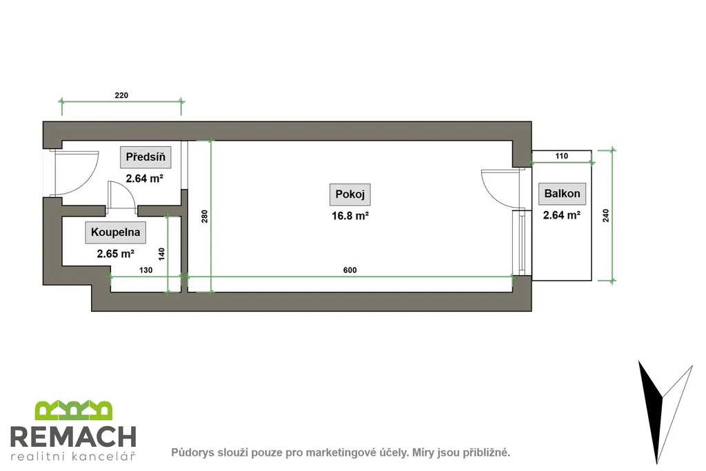 Byt nabízí jeden obytný pokoj s kuchyňskou linkou a dále koupelnu se sprchovým koutem. Ideální pro ty, kdo hledají moderní bydlení v dobré lokalitě bez nutnosti větších úprav.