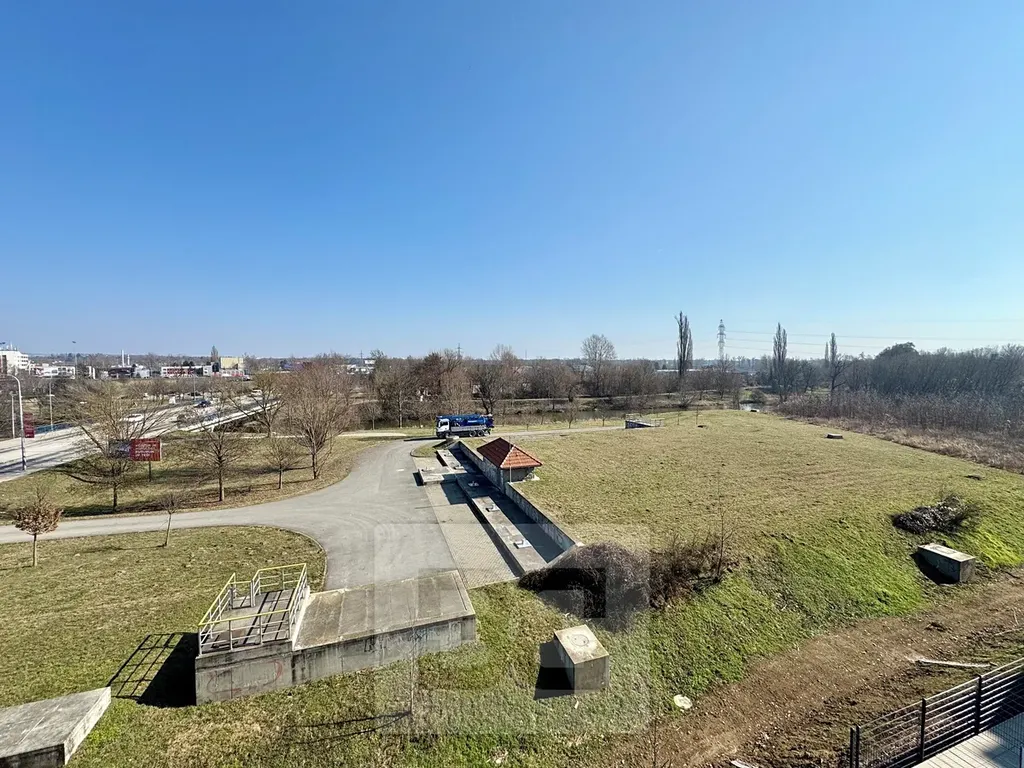 Dominantou obytné části je kuchyňská linka vyrobená na míru od truhláře, která je vybavena spotřebiči – lednicí, myčkou, sporákem a digestoří. Díky východní orientaci oken je byt příjemně světlý a nabízí hezký otevřený výhled do okolí.