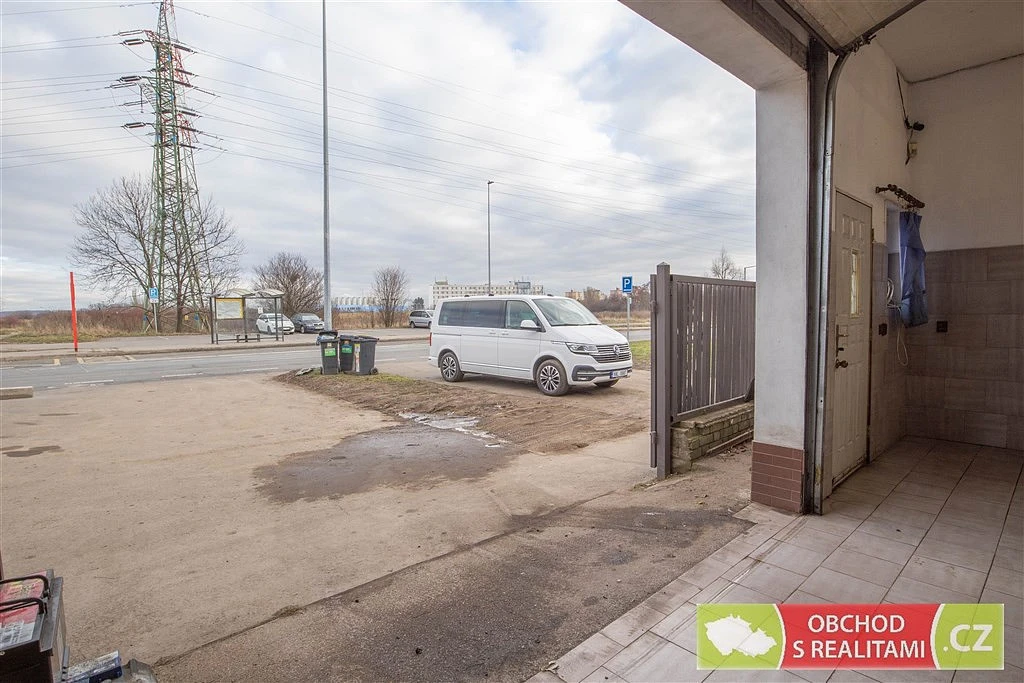 Rozměr garážových vrat a rozměr obchodního prostoru je uveden v přiloženém plánku. Obvykle volná parkovací plocha na veřejném pozemku před objektem.