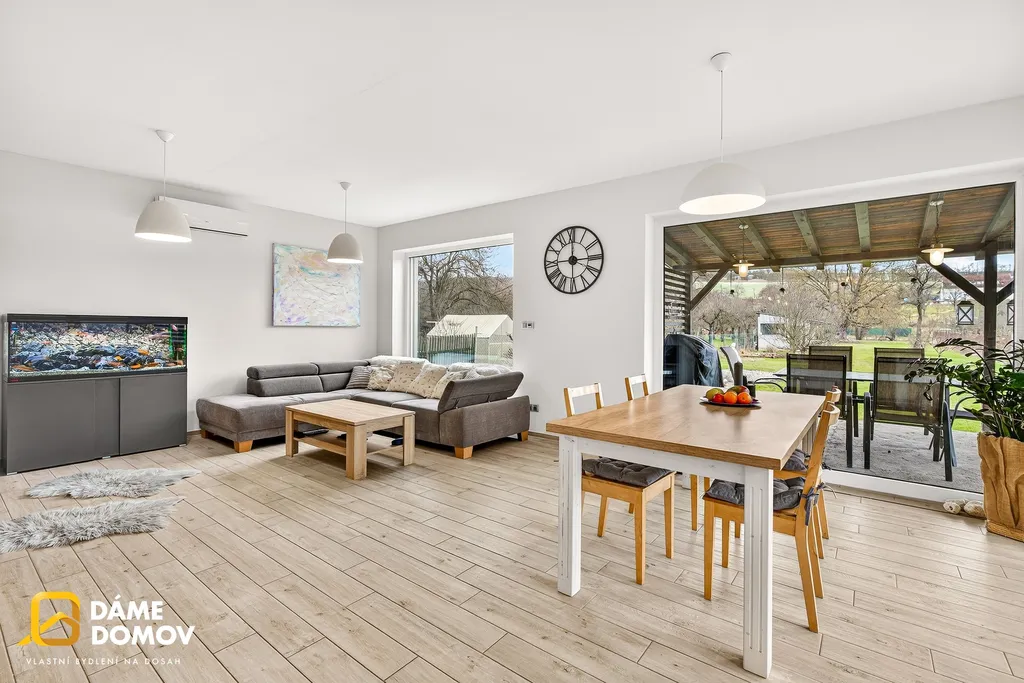 Nabízíme Vám moderní nízkoenergetickou novostavbu o dispozici 4+kk doplněnou o pracovnu/šatnu, dvě koupelny a praktickou, prostornou technickou místnost. Dům byl navržen s důrazem na komfort, vzdušnost a propojení interiéru s exteriérem – z obývací části je přímý vstup na zahradu, která nabízí ideální prostor pro relaxaci, posezení s rodinou či přáteli a klidné chvíle na čerstvém vzduchu. Každý detail zde dává smysl a vytváří harmonické místo pro moderní rodinný život.