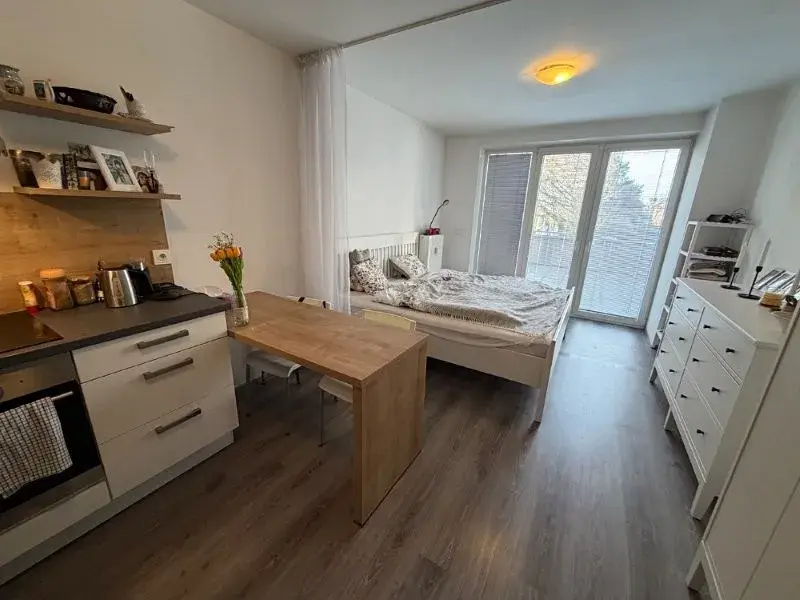 1363 Pronájem zděného zánovního bytu 1+kk v Jihlavě, ul. Vrchlického. Byt o výměře 28,4 m2 + zděná komora na chodbě 4,4 m2 + terasa 17 m2 se nachází v 1. NP bytového domu. K bytu je bezbariérový přístup, zděná komora na chodbě s přívodem vody a odpadu s možností instalace pračky, sušičky, dále lednice, mrazáku. V bytě kuchyňská linka do L včetně spotřebičů - lednice, varná deska, trouba, digestoř, myčka. Orientace bytu a terasy k jihovýchodu. PENB C, volné od 1. 5. 2026, po dohodě možnost i dříve.