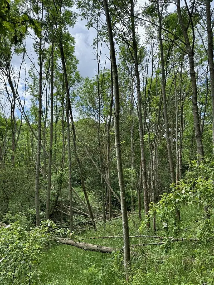 - p.č. 212 vedená jako lesní pozemek o celkové výměře 2 679 m2, z toho vlastníme podíl 1/3 tedy 893 m2 (stáří lesa 39 let, zastoupení dřevin jasan).